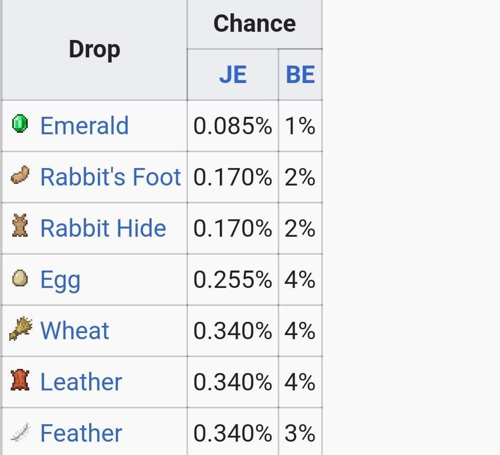YouTuber IAJMinecraft ha creado una herramienta de visualización para cotejar posibilidades en Minecraft. Los datos son para la última versión de Minecraft Java Edition (1.15.2) y tienen la posibilidad de mudar en futuras actualizaciones. Estas cantidades difieren de otras ediciones de Minecraft (Boundary).